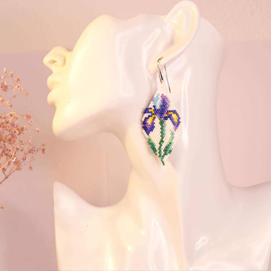 Ik presenteer de luxe oorbellen van hoogwaardige kralen. Charisma, elegantie en verfijning komen tot leven in mijn serie rombvormige oorbellen met een betoverende bloemenprint.